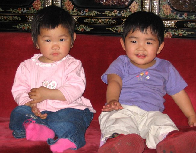 Yesterday I was shelfing books at the school library and come across a Chinese Nursary Rhymes book. It had beautiful pictures and the poems written in Chinese Callegraphy as well. I read this one and thought instantly of your girls. (the picture was really neat as well.)