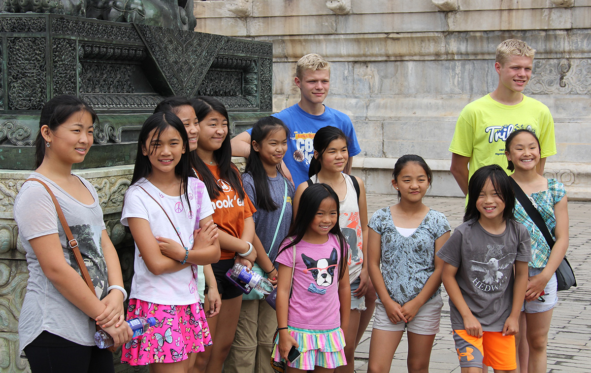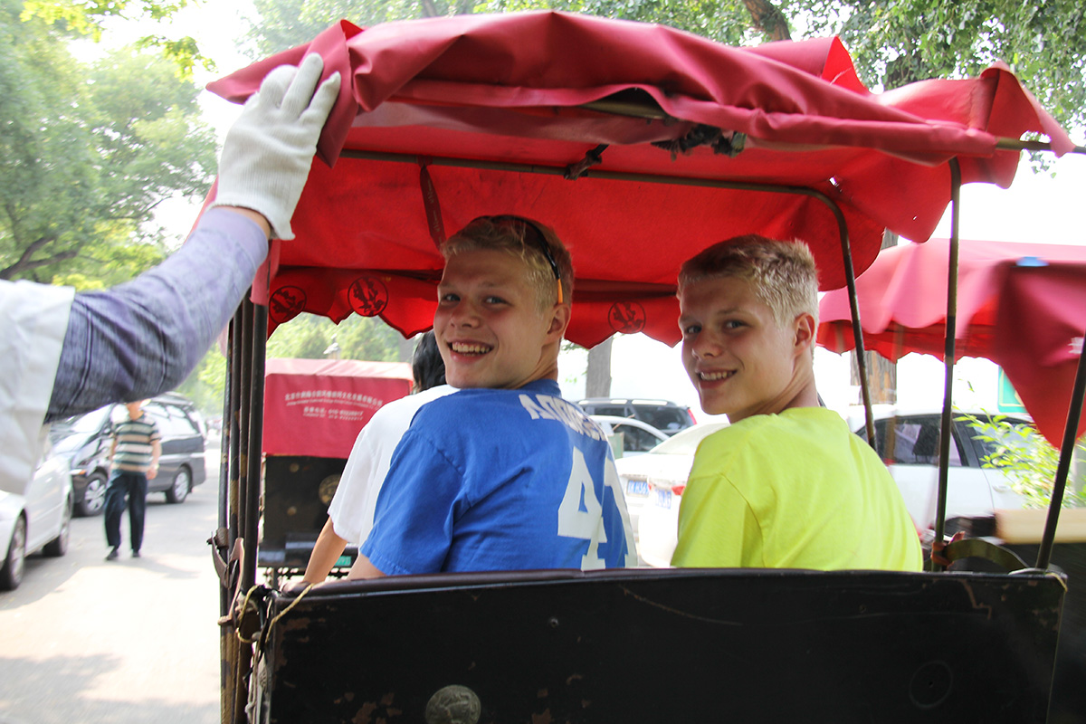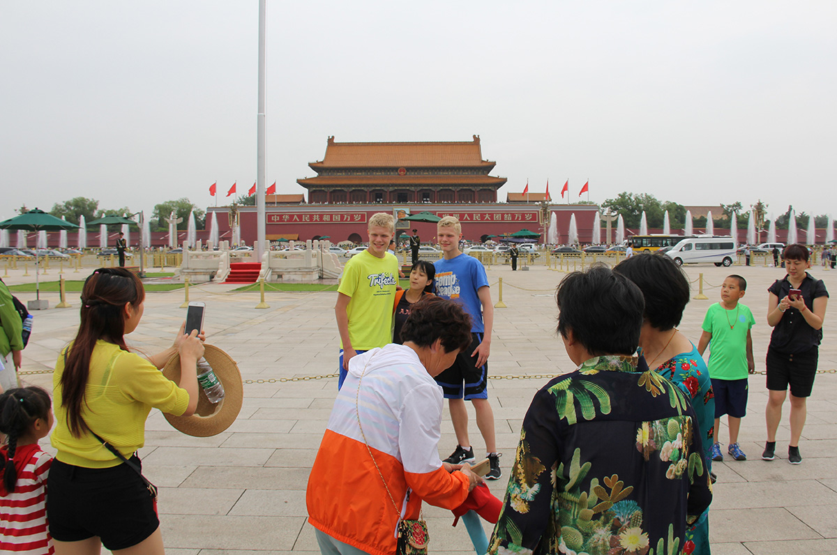 Our second day in Beijing was spent checking off another couple Beijing must-dos off the list. We went to Tiananmen Square and then to the Forbidden City. When we were last there, it was February, 2006 and Beijing was very cold, even for winter. There was hardly anyone in Tiananmen Square or the Forbidden City. Today that was not the case. There were tons of people everywhere, understandable given it is the height of tourist season; but, it made me appreciate our last visit and the relative emptiness of the place. Our tour this time was also more formal and it was nice to have some insight into things we were seeing. However, one of the more interesting things is a result of us travelling with our kids: we get lots of attention. Sometimes it is for the girls, because people know they are adopted; and, sometimes it is for the boys because they are tall and blond and twins. In the square today, they could have made some good money charging people to take photos with them. People come up and ask them if they can get a picture with them. Our boys, being good natured, comply, which leads to more people asking to have their photos taken with them. We finally had to cut it off and move on.