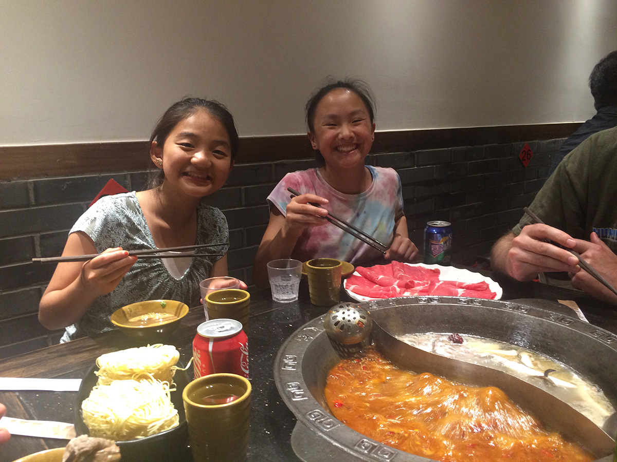 That concluded the day of touring. But, our day wasn’t over. We decided to go to the Beijing Acrobatic Show. It was a short but highly entertaining variety show demonstrating feats of strength, agility, and daring. After that we decided to go find a restaurant with some culinary intrigue… or at least a good bowl of noodles. We ended up at a hot pot restaurant. If you haven’t been to one of these, this is where they put a boiling cauldron of broth in front of you, on a burner, and you order meats and veggies to cook yourself, in the broth. Luckily, our server was very patient and through gestures and pointing we ordered a pot that was half regular broth and half “a little spicey.” I would have hated to see what really spicy was like! I was the only one that ate much cooked in that broth. The meal was highly enjoyable for all of us and gave us a great family memory. I think the idea of a group of friends or family sitting around a fire in a communal type of meal appeals to our core and produces an enriching experience. We saw many tables of friends sitting around their pots, laughing and enjoying the evening.