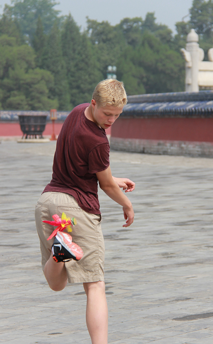 We wrapped up our Beijing visit with a visit to the Temple of Heaven. This was the place the emperor would come to prepare himself for festivals and conduct sacrifices. It was a much more peaceful and frankly, enjoyable, visit compared to the Forbidden City. The crowds were a lot less and the temple is surrounded by a large park where people regularly come to play and relax. There were groups playing checkers, card games, shuttlecock, and many other activities. We bought a few shuttlecocks and started playing ourselves. I think everyone appreciated just being able to relax a bit and not tour and sightsee. We spent quite a bit of time in the surrounding park and in some of the large courtyards. After that, we dropped a couple of the families back off at the hotel as only three families (including us) are continuing on to the next few cities. The families we left will meet up with us again in Guilin.