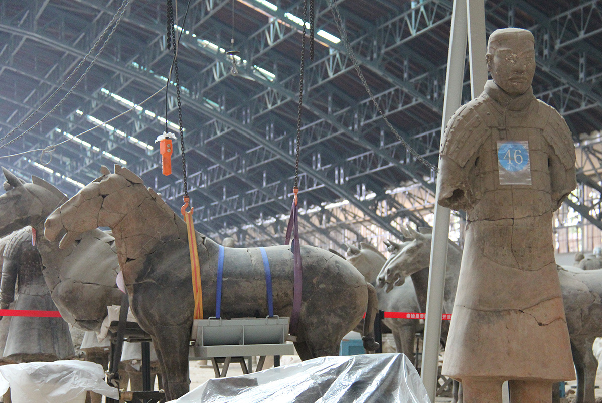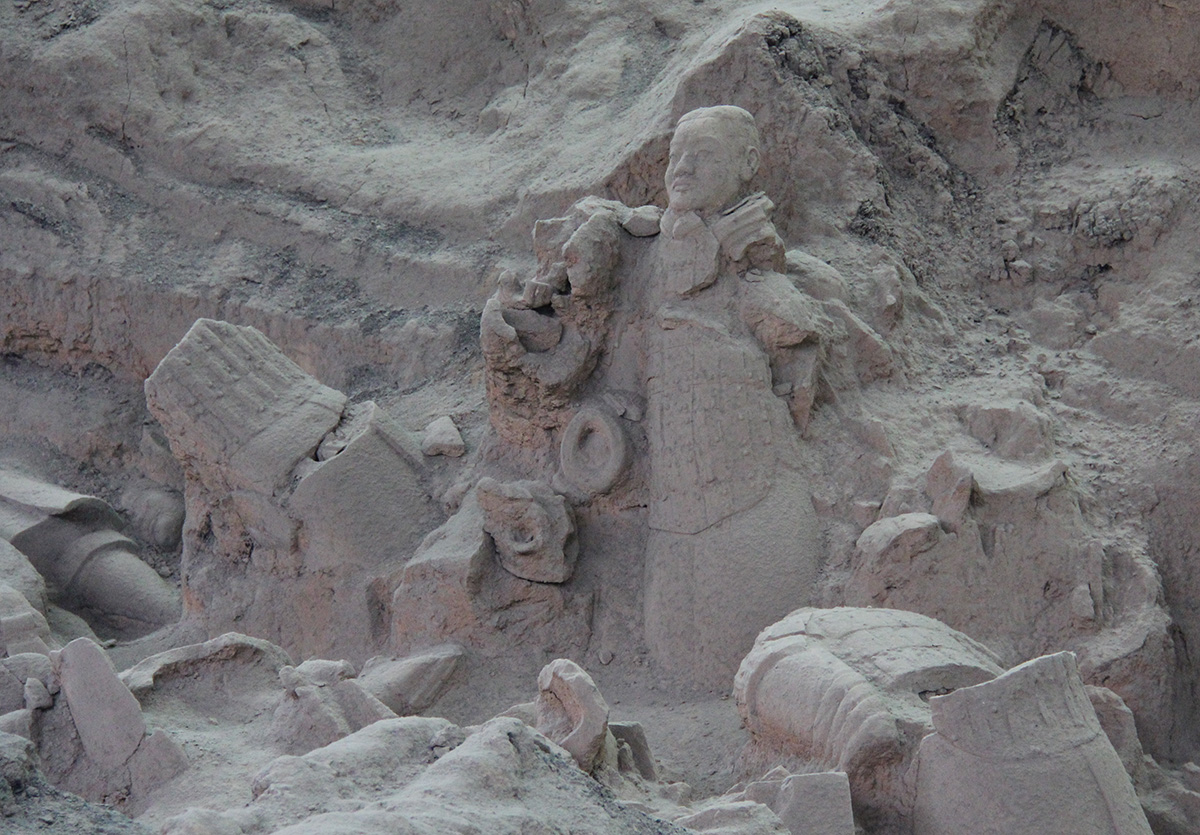 We arrived in Xian and met our guide, Jessica, who is another very smart and knowledgeable guide. We went out to dinner and then got checked into our hotel and retired for the night. This morning we started at 8:30 am and drove quite a ways across town to the Terracotta Warriors site. This is an active archeological site and it was worth the visit from multiple perspectives. It is a wonder to think what this emperor did to construct all of these warriors and build the army for himself in the afterlife. It is also very impressive and amazing to see the amount of work they’ve done to unearth the warriors and piece them back together. The dig is still ongoing and you can see many of the figures in various stages of being unearthed. Apparently, the workers choose to work during the night because of the crowds and noise during the day.
