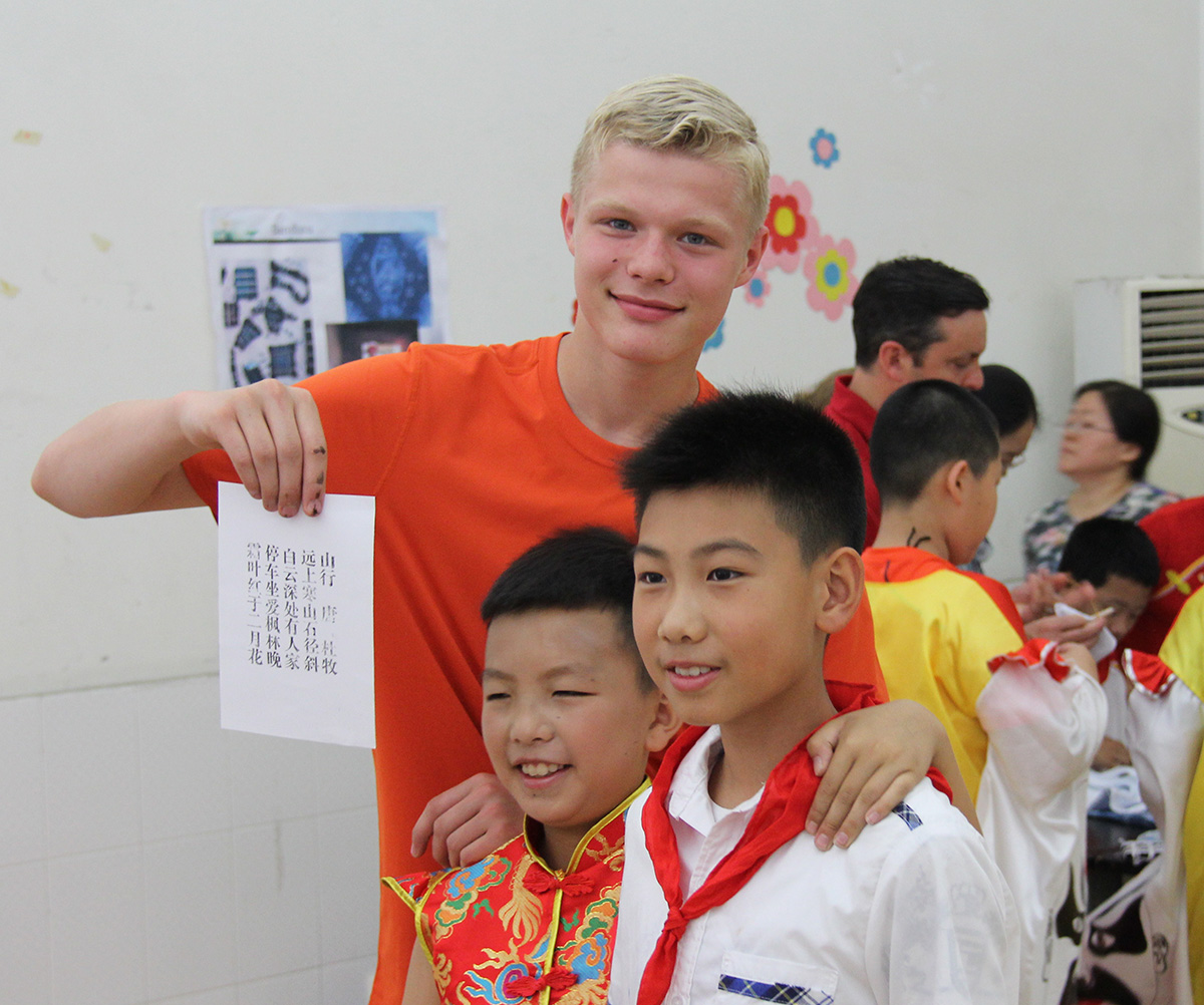 In the morning we visited a local elementary school and spent about 90 minutes with a class of 5th and 6th graders. The school is affiliated with the university that our guide went to, which is how he is able to arrange a visit like this. Most of the students have parents that teach or work at the university. The kids welcomed us at the gate and showed us in to their classroom. They were chattering and buzzing like any other typical elementary classroom. The room was arranged with 4 stations, and we distributed ourselves amongst the kids, introducing ourselves and telling where we were from.