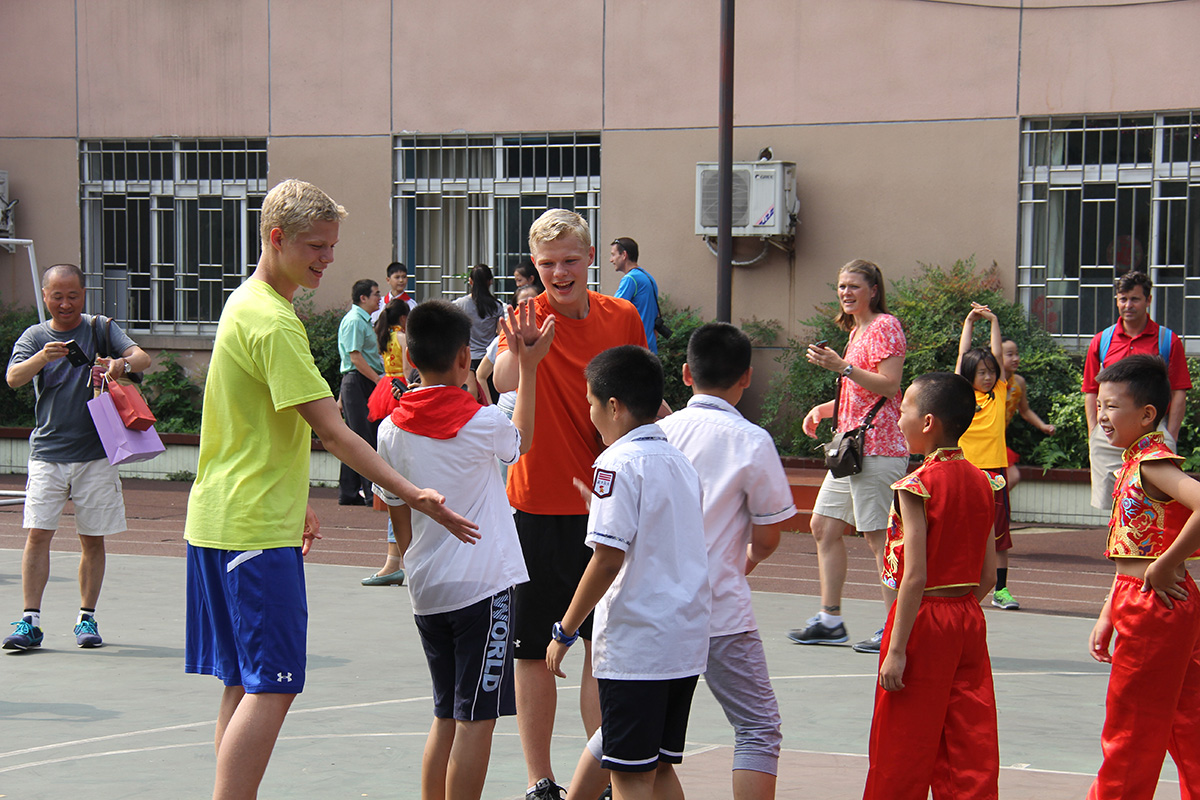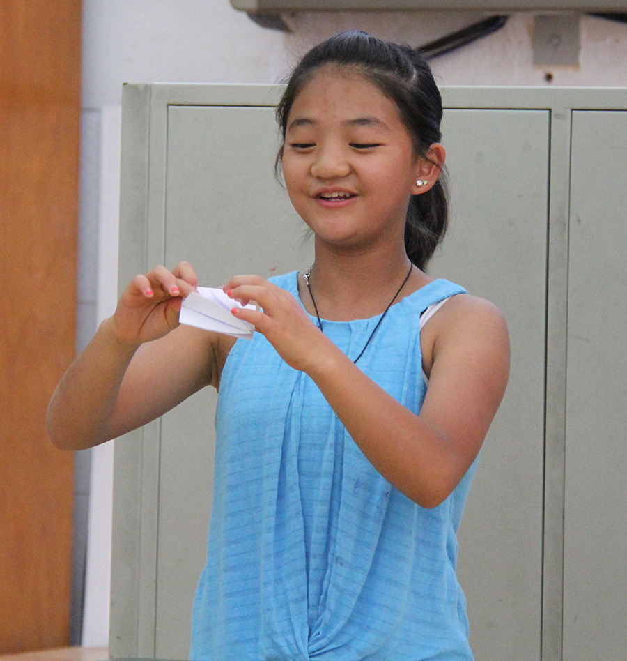After the crafts, the class asked the kids if there were any skills or talents that our children wanted to show off. Our boys took on 5 of the boys in a game of basketball, which everyone watched. Ana, one of the other girls, did her ballet dance. Jenna did some gymnastics moves, which got a good crowd reaction; and, Carli taught them all how to fold paper cranes, which especially the girls in the class loved.